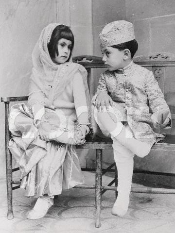 11 Aug 1954, Woking, England, UK — Three and half year old Shahrukh Khan (right) and his six year old sister, Zamzam Khan, doff their shoes before entering the Shah Jehan Mosque in Woking. The occasion was the celebration of the Muslim festival, ‘Id Al-Adha, which commemorates the sacrifice of Ishmael by Abraham. Rites were conducted by British Muslim, Al-Hij Dawud Cowan, M.A. lecturer in Arabic at London University. Shahrukh and Zamzam are the children of the Commercial Secretary of the Pakistan Embassy. — Image by © Bettmann/CORBIS