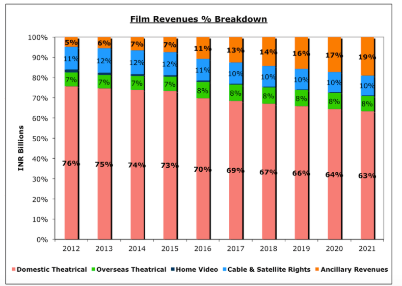 Further, the revenue breakup of the Film industry, is as under, where, in 2016, 70%+ revenues came from Domestic Theatrical and approximately 22% came from Cable and Satellite (C&S) + Ancillary (mostly digital) rights: