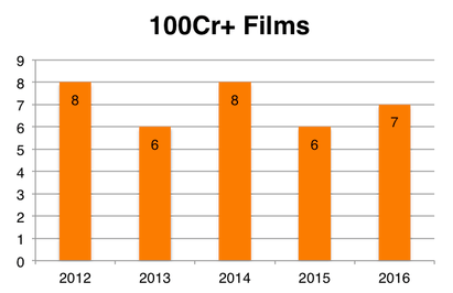 Yet, the no of Rs 100 crore plus films have remained around the same.